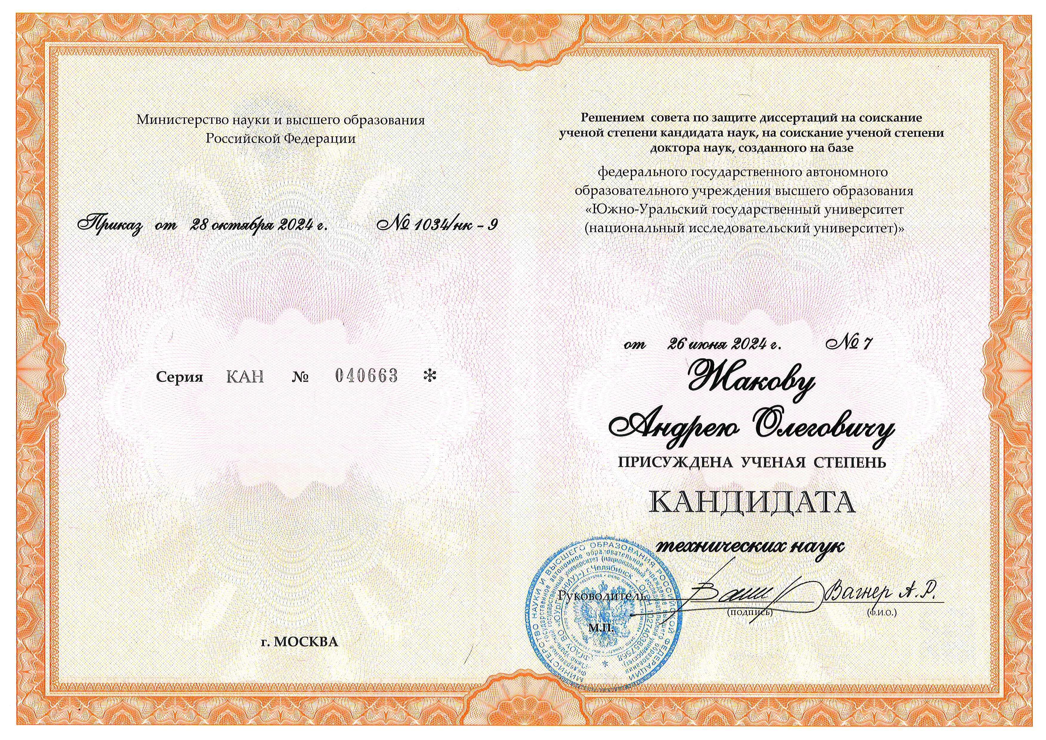 Кандидат технических наук, инженер, руководитель подразделения произодства
